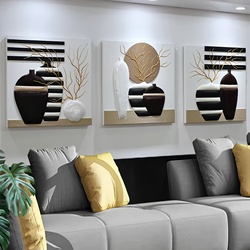 Moderne Decoratieve Schilderkunst Met Zandsteen Textuur Voor Home Decor Verticale Stijl Met Glazen Vaas En Led Verlichte Muurschildering